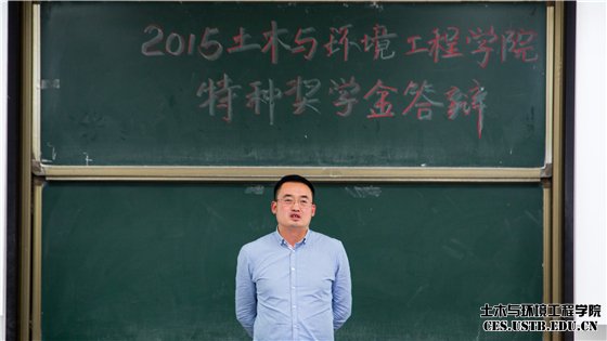 在邓波老师“天天正能量,月月奔目标,年年有进步”的美好希冀下,土木与环境工程学院2015年特种奖学金答辩圆满结束。