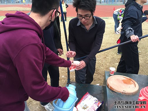为学习践行社会主义核心价值观中的“友善”这一核心词,11月29日上午,土木与环境工程学院本科121党支部开展了“体测送温暖”活动,土本121党支部的党员们拿着暖壶和补充体能的食品来到了操场上,为参加体测跑1000米的同学分发热水,受到了参加体育测试同学的一致好评。土环学院2012级导员黄东旭,土本121党支部全体党员参加了本次活动。