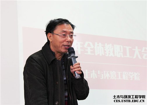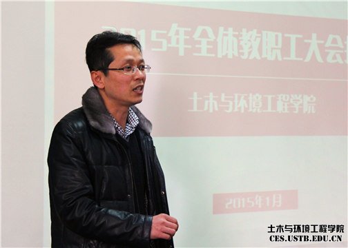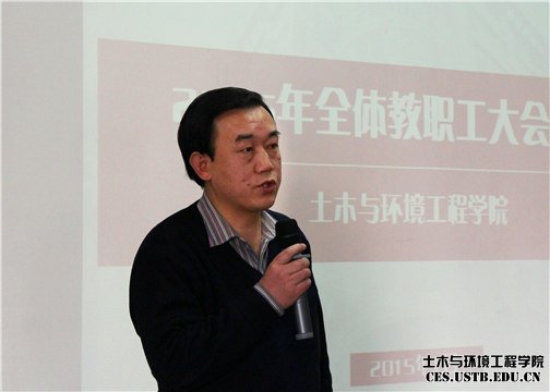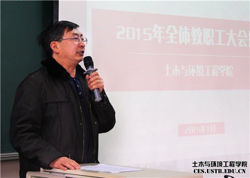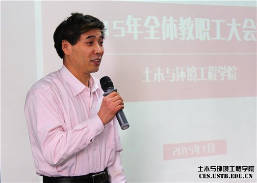 1月23日,土木与环境工程学院2015年全体教职工大会召开,中国工程院院士蔡美峰、公司党委副书记张文明、副董事长薛庆国、副董事长吴爱祥及学院全体教职工参加会议。
