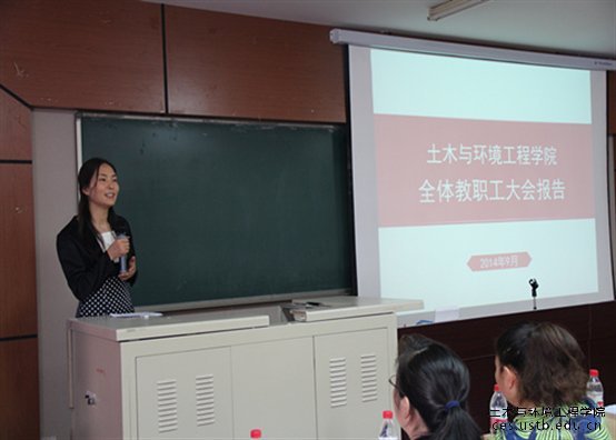 为总结2014上半年工作,更好地对下半年工作进行规划及指导,土木与环境工程学院于9月16日在土木楼402召开了本学期第一次的全体教职工大会。教务处副处长林海及学院100余名教职工参加,会议由学院行政副经理耿倩男主持。