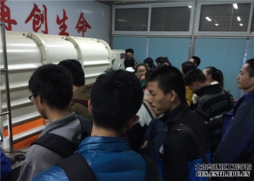 研讨环节结束后,全体参与师生参观了安全专业救生舱实验室,实验室负责人欧盛南给予细致耐心的讲解,同学对安全专业前沿的科研动态和未来的努力方向有了具体形象的感受。