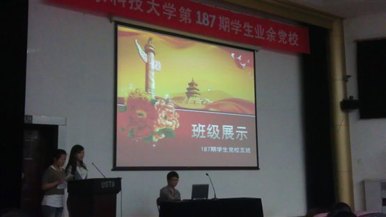 之后,各班的学员代表为大家带来了精彩的党校实践环节成果汇报。此次党校实践环节以“两会热点话题”、“喜迎党的十八大”、“践行‘北京精神’”为主题。各班通过诗朗诵、演讲、歌唱等形式,展示了学员的青春的风采和他们对党发自内心的热爱之情。从同学们的展示中可以看出,此次社会实践取得了丰硕的成果。更令人欣喜的是,在经过党校学习后,同学们的思想觉悟有了显著的提高。