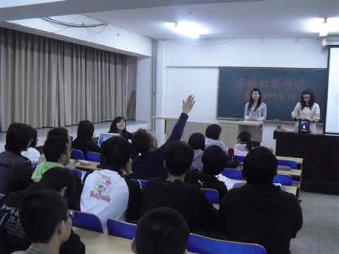 在红色短信展示环节,红短组成员卢小刚、刘苏、杨光向同学们展示他们精心准备挑选的红色短信,表达了对党的憧憬和爱戴。接下来的经典著作解读则由经典著作组经过精心准备的何永贞、樊林玉、葛晨晨、吴瑞伟同学,围绕“建党90,生活日益丰富,人们对幸福感的看法也越来越多样”展开论述和交流,以“没有精神信仰,难有个人幸福”该著作为主进行学习。最后的主题演讲阶段大家踊跃发言,各自表达了对党和社会的看法,以及自身的感激之情。