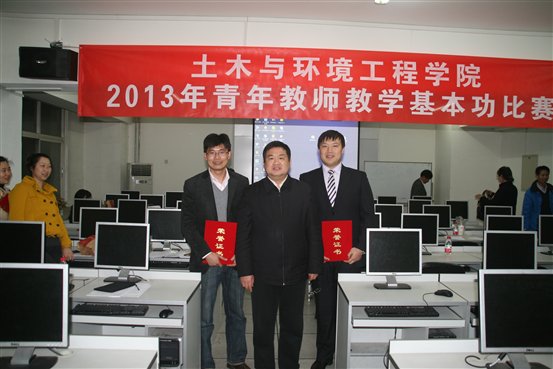 土木与环境工程学院2013年青年教师教学基本功比赛经过系所预赛和学院大赛两个阶段,于4月11日圆满结束,来自五个系的12名青年教师参加了学院大赛。此次比赛由学院教学委员会和学院工会联合组织。