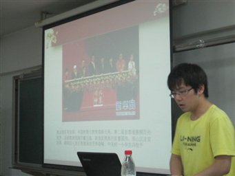 随后,三个小组分别针对“两会热点话题”、“喜迎党的十八大”和“践行‘北京精神’”三个方面的内容进行PPT和视频展示。