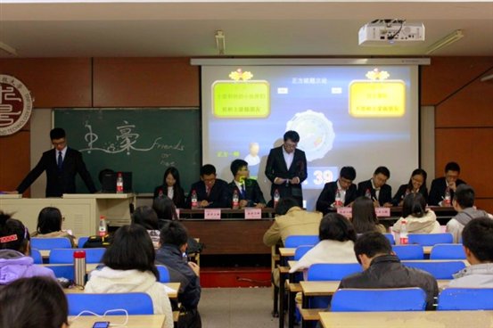 11月1日晚上7点,土木与环境工程学院求是学会在于土环楼402举办了一场别开生面的辩论表演赛,此次辩论赛以“要不要和土豪做朋友”为辩题,话题新颖。辩论赛共分正反方介绍,自由辩论,总结陈词,等环节这个过程高潮迭起,讨论热烈,辩手们语言幽默,反应灵敏,两方奇虎相当,为同学们呈现了一场思辨与艺术的盛宴。最后评委老师对本次辩论赛做了精彩的点评,指出了双方的优点和不足,并表示期待大家的进步。
