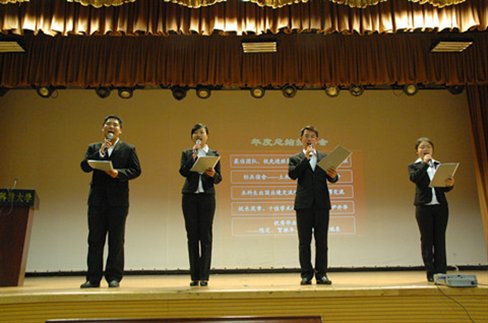 报告会的最后由优秀毕业生代表陈定、贺振华、张敏艳、吴瑞东向同学介绍大学的历程,他们以诗歌的形式回味了大学四年的点点滴滴,毕业在即,更多的是对老员工活的感悟和不舍。最后主持人宣布土木与环境工程学院2011年总结汇报会圆满结束,希望在新的一年里,土木与环境工程学院在学院的教学、科研、员工培养、建设等各项工作再接再厉,更上一个台阶。