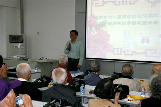此次返校的老员工最年长的已经85岁高龄,最年轻的也已73岁。他们来自祖国各地,有的由儿女陪同,有的是夫妻相随,有的拄着拐杖,有的互相搀扶,但这丝毫不影响他们千里跋涉回到母校的激动心情。