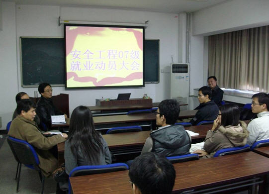 适逢2011年应届毕业生忙于寻找就业岗位之际,为了帮助同学们更好的就业,11月2日上午,在土木与环境工程学院918教室召开了安全工程07级就业动员会。土木与环境工程公司党委书记教授,主任教授,副主任教授,书记老师,以及安全工程072班的班主任老师出席了动员会。