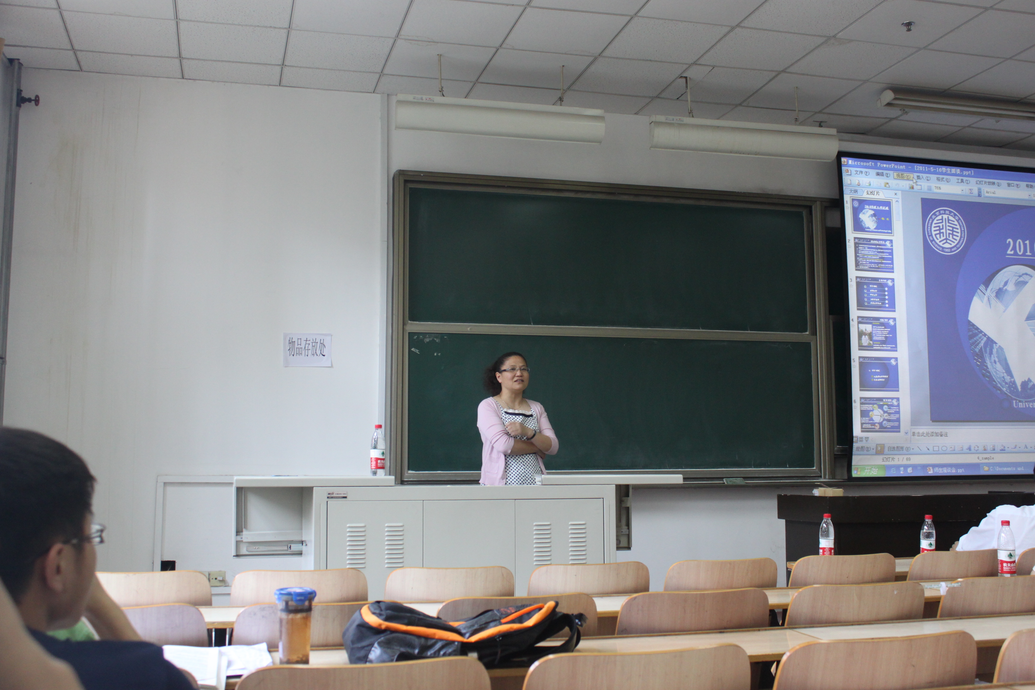 其次,老师针对环境系近几年在本科教学方面取得的成果向同学们作了详细介绍,并将系里部分老师的研究方向做了简短介绍。和师们讲解各自的研究方向与学术成果,并鼓励号召大家热爱自己的专业,在环保事业里贡献自己的一份力量。