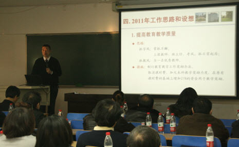 会上,经理教授作了2010年学院工作报告。报告首先介绍了目前学院的基本情况,其次汇报了2010年和重点推进工作,最后提出了2011年工作思路和设想。