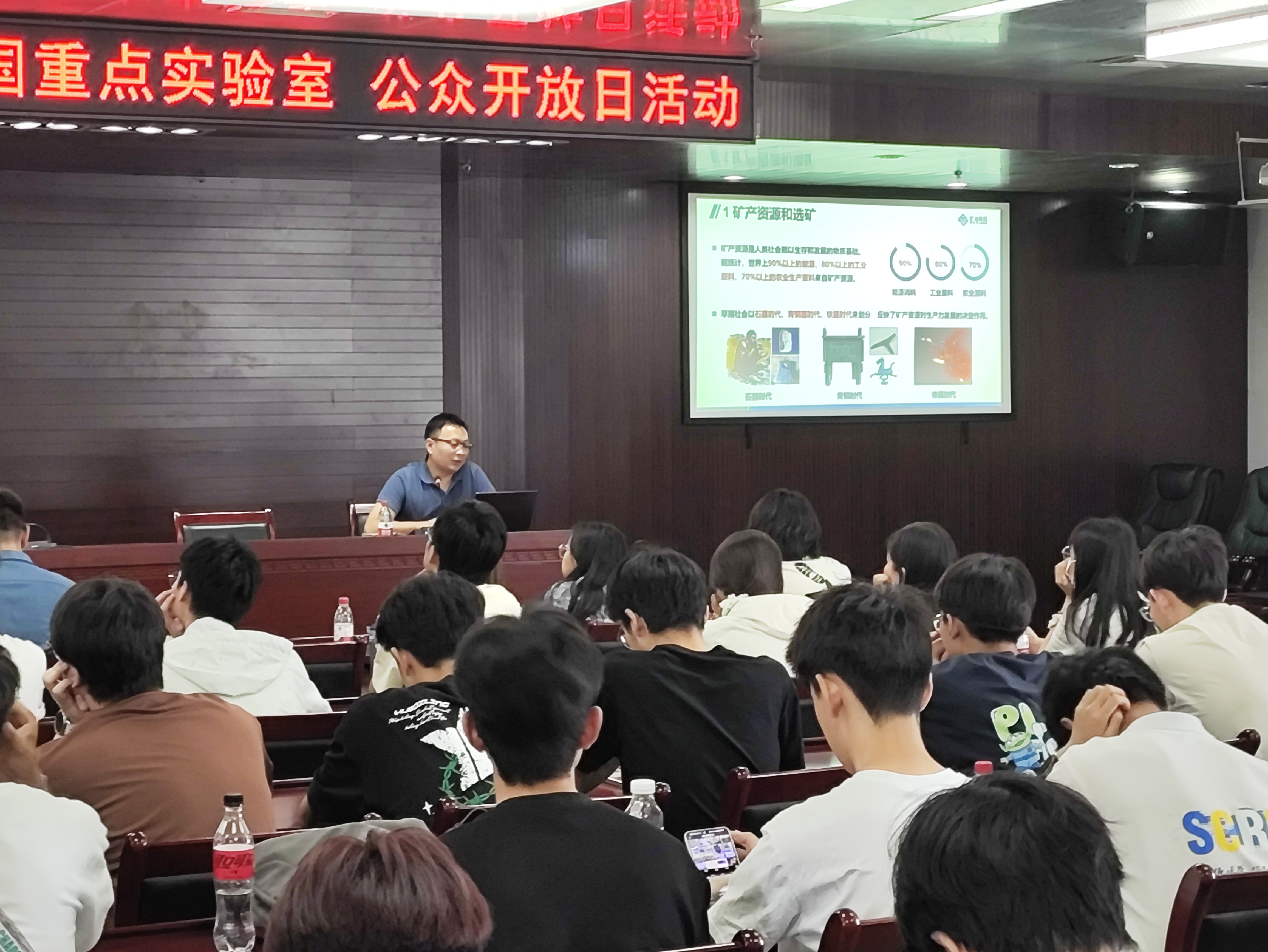 实验室参观结束后,选矿所朱阳戈所长以《选矿——认知与思考》为题,为同学们带来了一场精彩讲座。从选矿的起源谈到未来的发展趋势,深入浅出,条理清晰,引发同学们对专业的浓厚兴趣和深层思考。