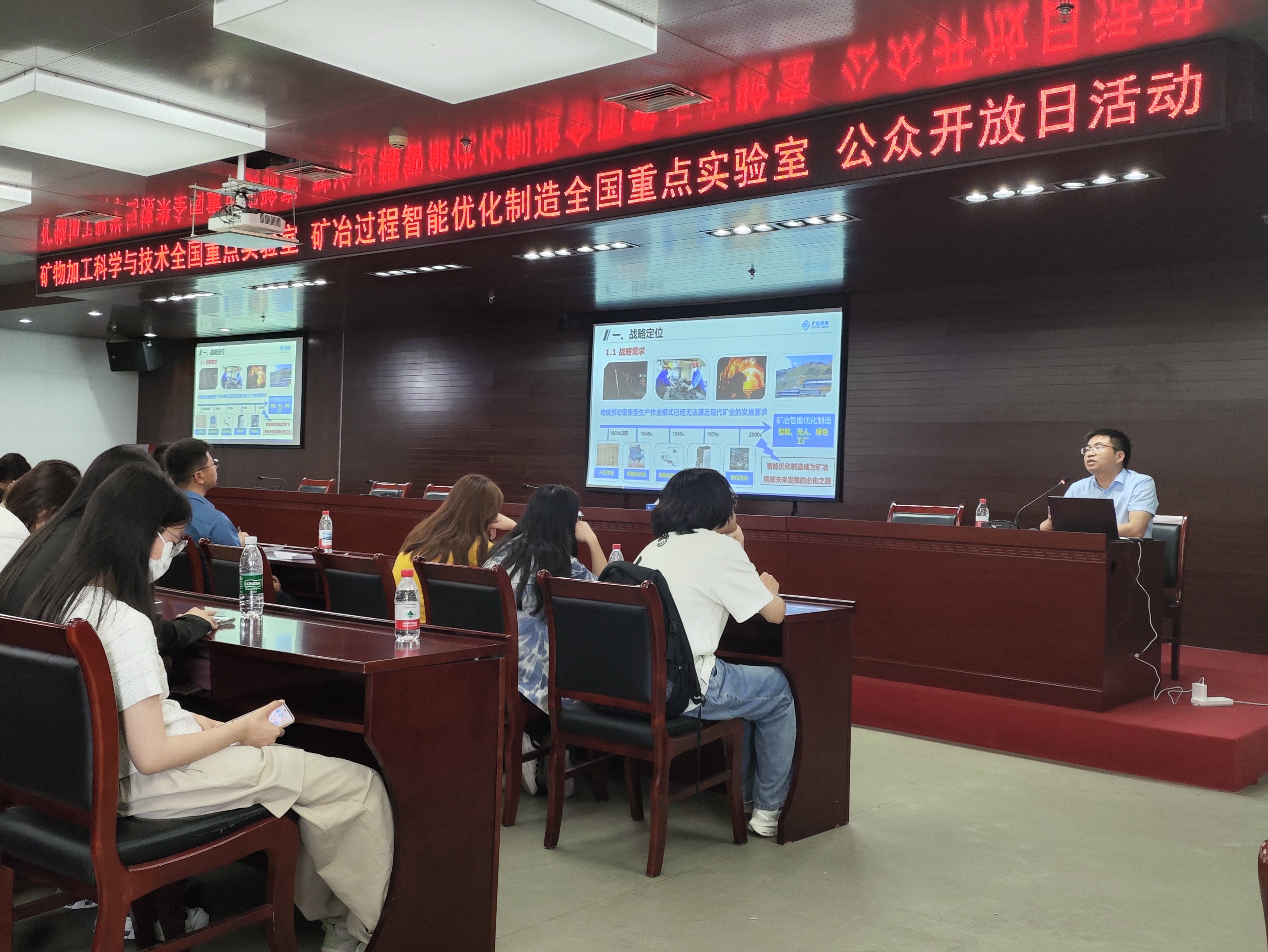 活动伊始,在集团讲解员的带领下,师生们对矿冶科技集团的整体情况进行了深入了解。从采矿工程、选矿工程、冶金工程,到固废处理与综合利用、生态环境工程、智能矿冶、矿业装备、工程设计等多个方向,全面展示了矿冶科技集团在资源开发与循环利用领域的强大实力与技术深度。