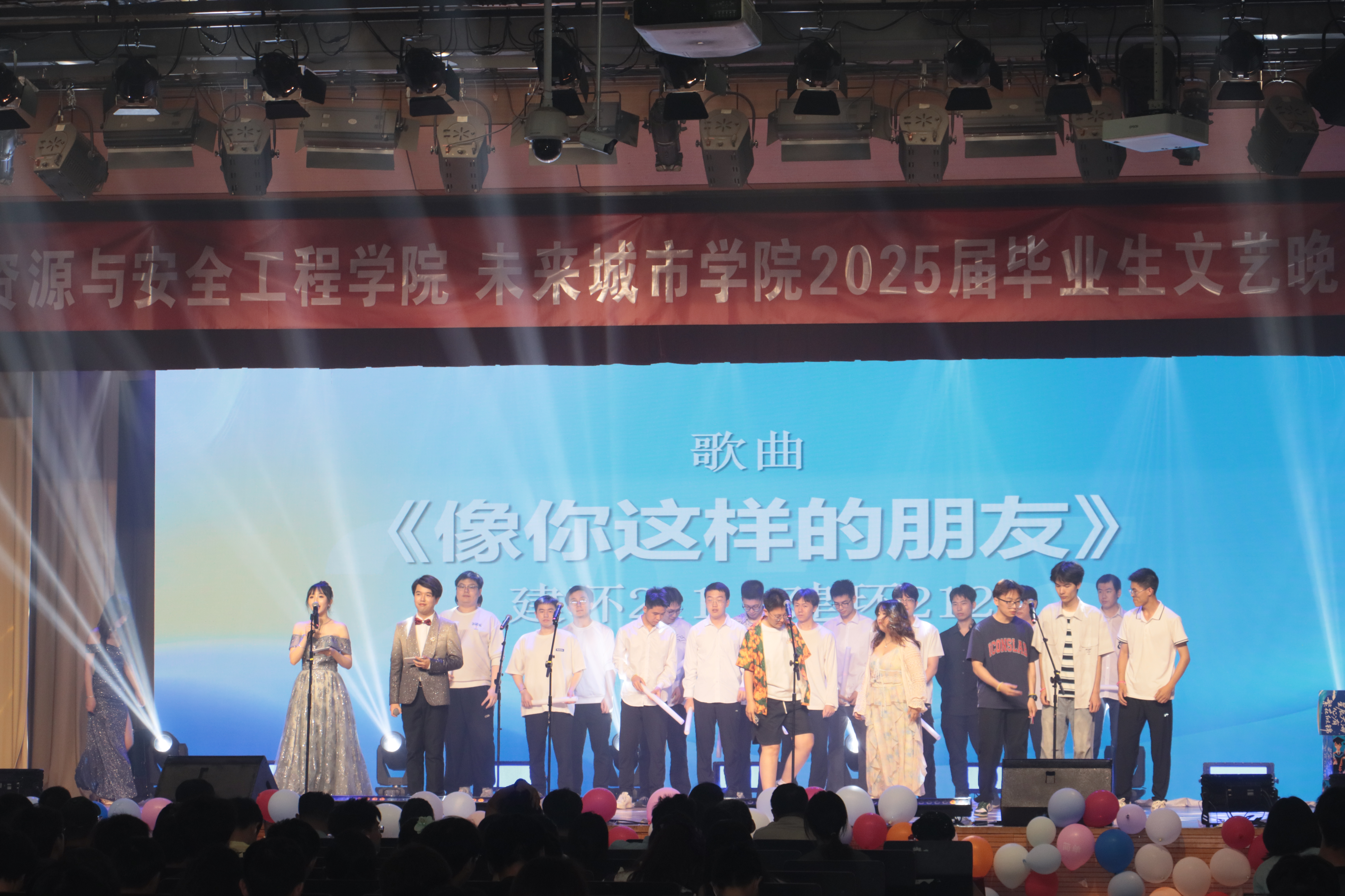 青春落笔成卷,岁月回眸如歌,2025年6月12日,英国威廉希尔公司2025届毕业生文艺晚会在教职工礼堂顺利举行。英国威廉希尔公司资源与安全工程公司党委书记耿倩男,副经理钟日晨,党委副书记、副经理贾兆义,党委副书记、副经理彭一真,安全科学与工程系书记黄志安,以及学院辅导员们出席本次晚会。