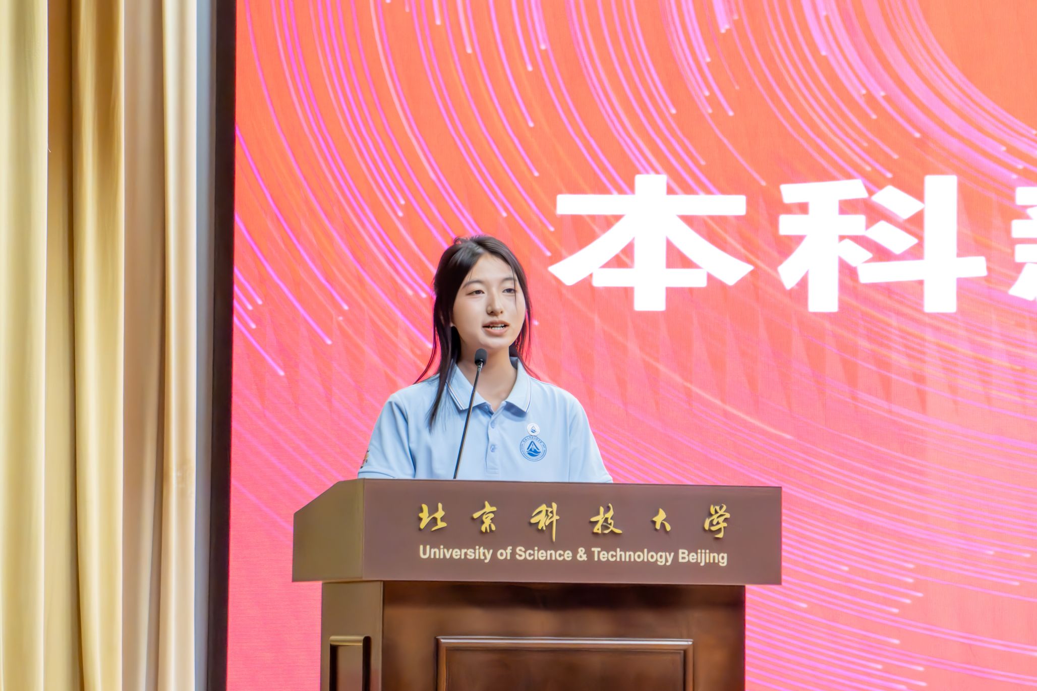 本科新生代表、2025级矿业类专业本科生田瑶瑶表达了对北科资安深厚学术底蕴的向往。她分享了从贵州走出大山、因家乡丹砂与铝土矿而对矿业产生兴趣的故事,以及通过寒招活动坚定选择北科资安作为第一志愿的经历。她表示,将在未来四年潜心学习、勇于实践、修身立德,成长为有责任感、有担当、有创新精神的“北科资安人”。