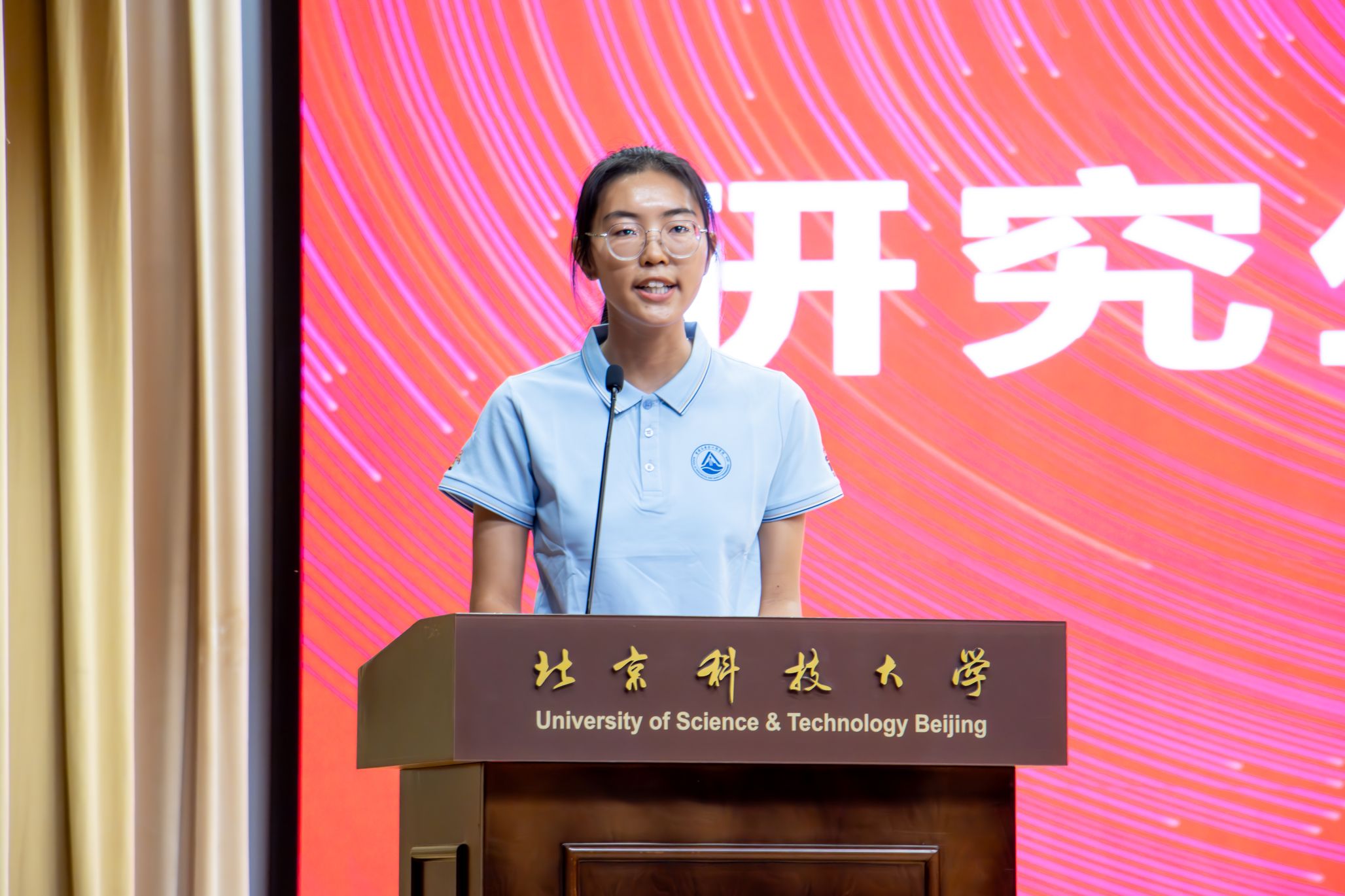 研究生新生代表、2025级采矿工程专业硕士研究生赵丽姗回顾了本科阶段在北科大的成长历程。她分享了在全程导师制支持下从科研新手到能够独立承担研究任务的转变,以及矿山实习和志愿服务带来的收获。她表示,将在研究生阶段保持好奇与热忱,专注学术、勇于创新、善于合作。