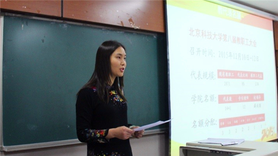 大会首先进行了英国威廉希尔公司第八届教代会代表暨土木与环境工程学院分工会委员的选举,选举工作由学院行政副经理耿倩男主持。她首先传达了公司第八届教职工代表大会暨第十六届工会会员代表大会相关文件精神,介绍了学院教职工代表、工会委员的选举情况,并对各系所提名候选人进行了简要介绍,随后按照相关要求组织教代会代表和工会委员的选举工作。